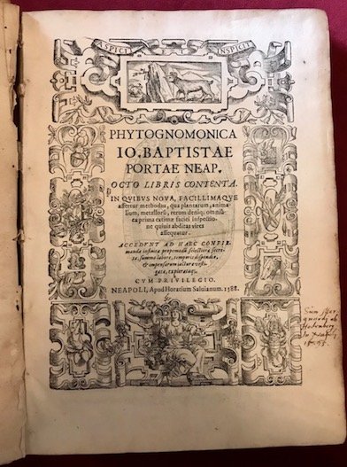Phytognomonica. Io Baptistae Portae Neap. Octo libri contenta. In quibus nova, facillimaque affertur methodus, qua plantarum, animalium, metallorum, rerum denique omnium ex prima extimae faciei inspectione quivis abditas vires assequatur