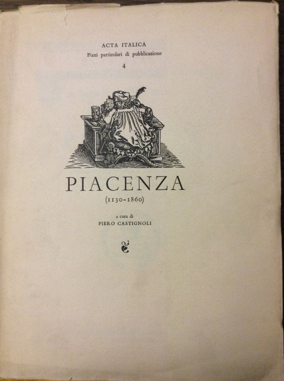 PIACENZA. COMUNE (1130-1336). - Signoria e Principato Visconteo (1336-1450). Principato Sforzesco (1450-1512). Dominazione Pontificia (1512-1545) ; Ducati di (Parma e) Piacenza (1545-1802). Dominazione Francese (1802-1814). Ducato di Maria Luigia d'Austria e dei Borboni (1814-1860). Acta Italica. Piani particolari di pubblicazione - 4.