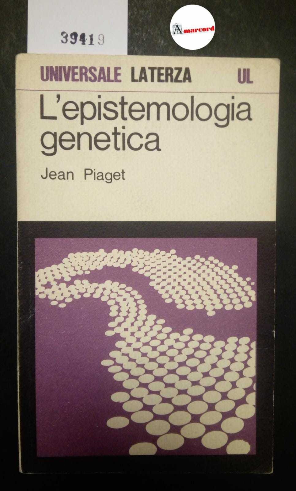 Piaget Jean Piaget Jean, L'epistemologia genetica, Laterza, 1983. Bari, Laterza 1983 italiano, in ottavo 124 39419