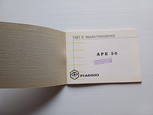 Piaggio APE 50 1969 manuale uso manutenzione motocarro originale 3 wheeler