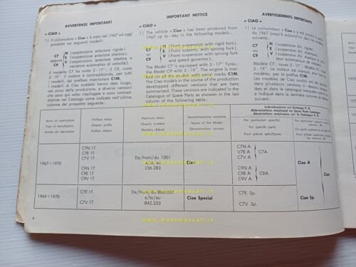 Piaggio Ciao Boxer Bravo 50 1967-73 catalogo ricambi originale