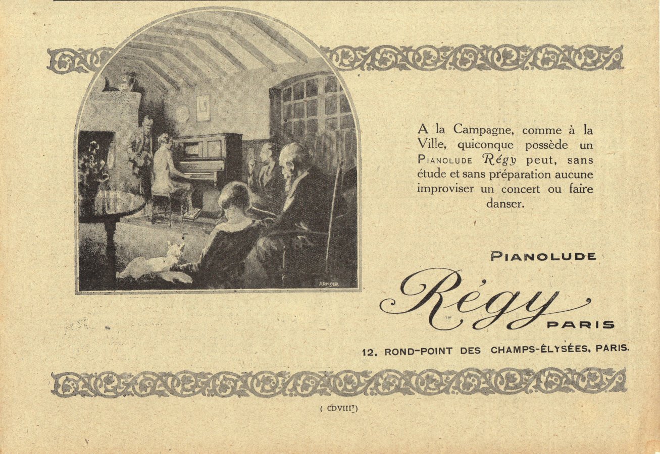 Pianolude Regy, Paris. Advertising 1926