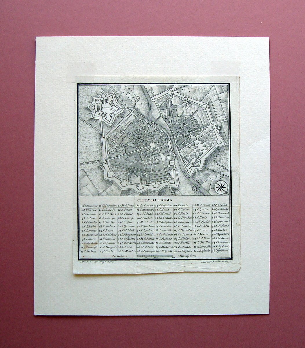 Pianta Citt‡ di Parma Incisione su rame G.Patrini primo '800 disegno Sardi