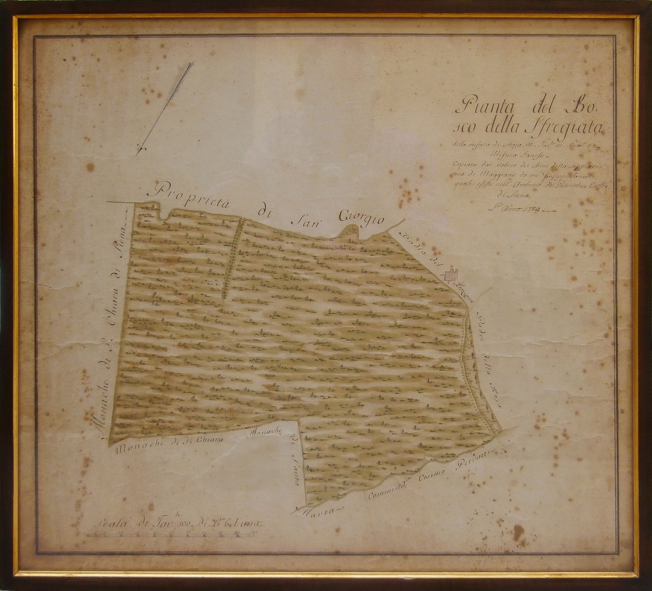 Pianta del Bosco della Sfrediata[…] copiata dal Cabreo dei Beni della Soppia Certosa di Maggiano da me Giuseppe Tanini quale esiste nell'Archivio del Patrimonio Eccle. di Siena L'Anno 1789.