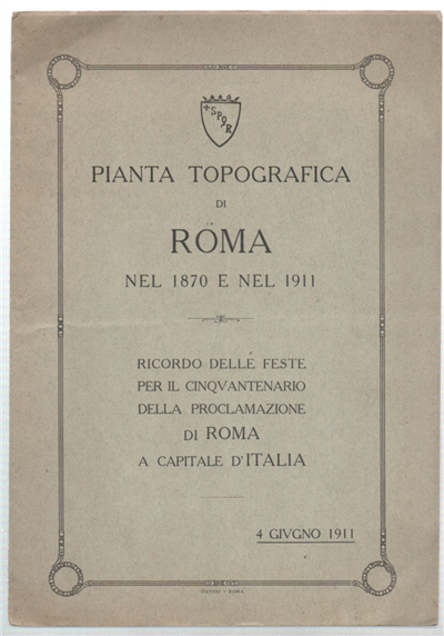 Pianta Topografica Di Roma Nel 1870 E Nel 1911. Ricordo Delle Feste Per Il Cinquantenario Della Proclamazione Di Roma A Capitale D'italia. 4 Giugno 1911