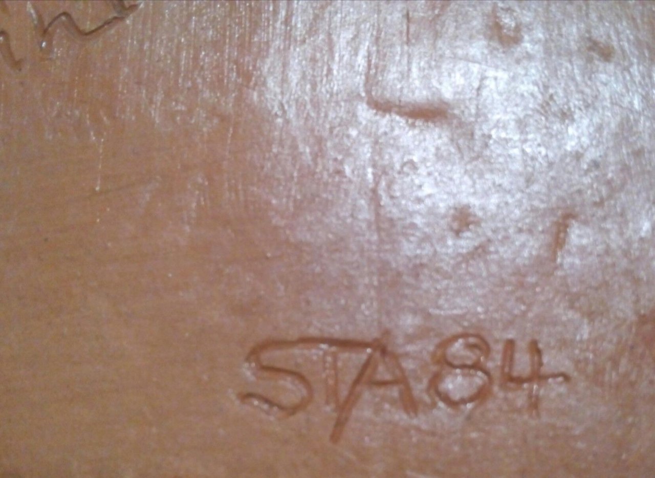 Piastra in terracottabassorievodel 1984per Karin Noltecorso di studio 1979-1984con incise varie firme degli studentifirma dell'autore STA84 in basso a destramisura 33x38 cm.presenta riparazioni, probabili rotture di cottura(5000 gr)