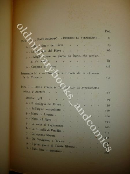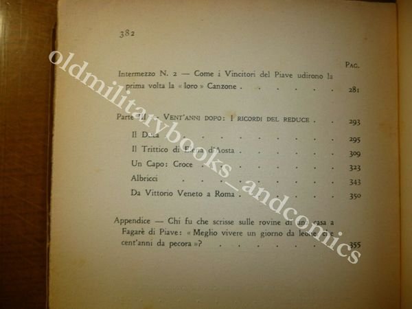 DESCRIZIONE: Cremonese Roma 1939 br. ed. SENZA sovracc. ill. pp. 382 in 8°. La Battaglia del Piave; Il passaggio del Fiume; Motta di Livenza; La corsa al Tagliamento; I primi Giorni di Trieste liberata; Chi fu che scrisse sulle rovine di una casa a Fagare di Piave “Meglio vivere un giorno da leone, che cent’anni da pecora”; etc. La preparazione morale e bellica del soldato italiano, l'avventuroso inseguimento del nemico sconfitto, profili e ricordi. Ampio volume ricco di episodi inediti. CONDIZIONI: Buone, macchia alla parte bassa del vol. e piccolo distacco della cop. PESO / WEIGHT: 599 gr. without package