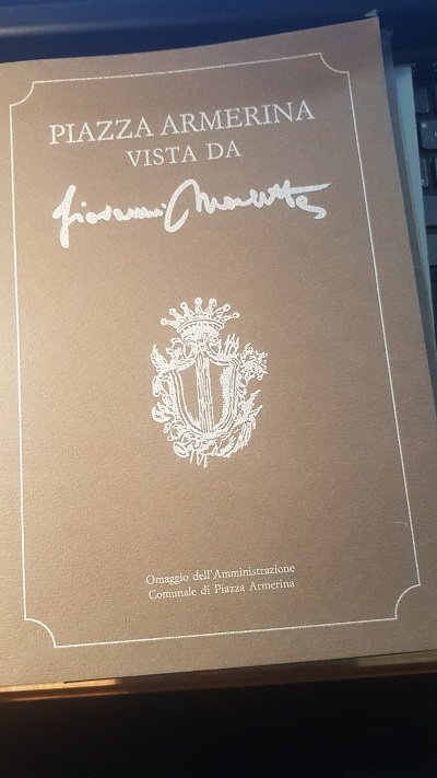 Cartella edita dalla casa editrice Lussografica per conto della Papiro Editrice di Enna stampato su cartoncino Murillo delle cartiere di Fabriano comprendente la riproduzione di 20 disegni di monumenti di Piazza Armerina, realizzati dall’artista Giovanni Marletta