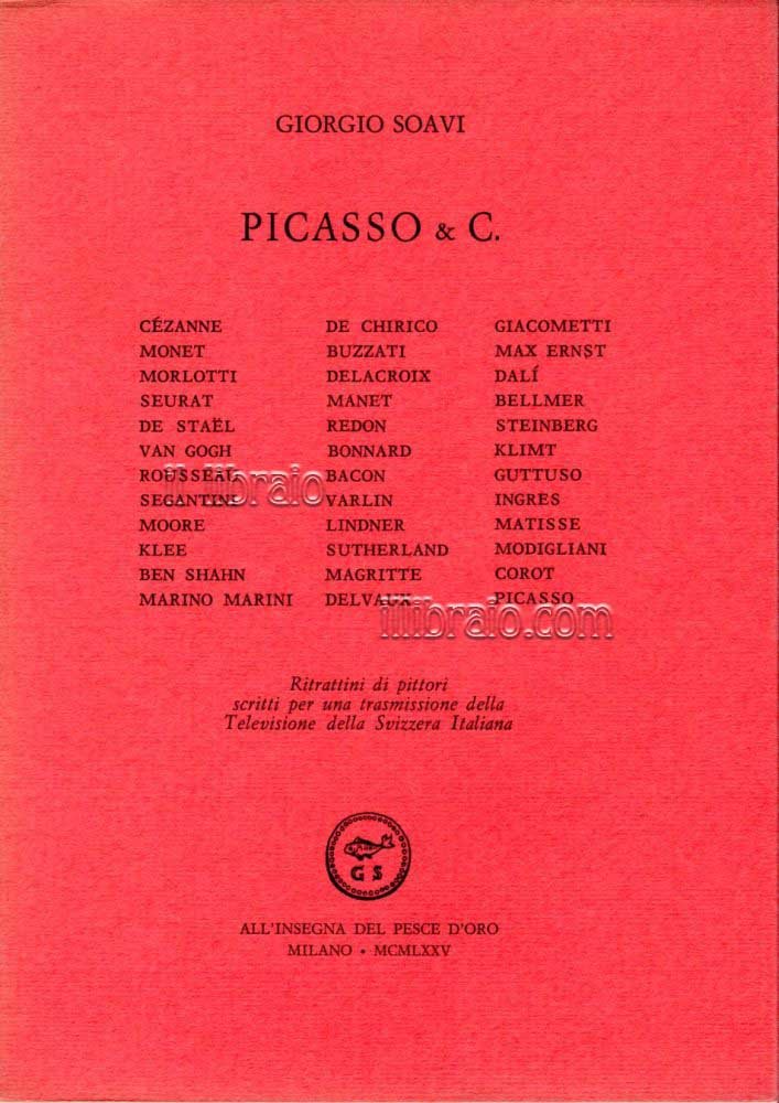 in 16°; pp. 160 (ill. in bn.); br.; coll. Narratori, n° 46. Cézanne, Monet, Morlotti, Seurat, De Staël, Van Gogh, Rousseau, Segantini, Moore, Klee, Ben Shahn, Marino Marini, De Chirico, Buzzati, Delacroix, Manet, Redon, Bonnard, Bacon, Varlin, Lindner, Sutherland, Magritte, Delvaux, Giacometti, Max Ernst, Dali, Bellmer, Steinberg, Klimt, Guttuso, Ingres, Matisse, Modigliani, Corot, Ritrattini di pittori scritti per una trasmissione della Televisione della Svizzera Italiana. Picasso. Tiratura di 1000 esemplari numerati (ns. 911)
