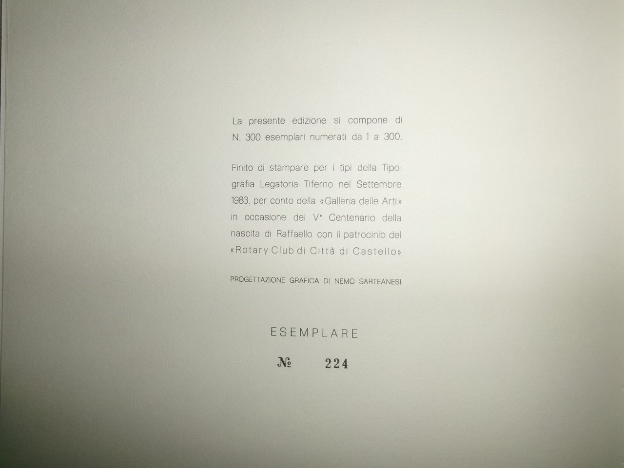 PICASSO. Gli Amori Segreti di Raffaello e la Fornarina 20 Acqueforti. Città di Castello, Galleria delle Arti, Rotary Club, 1983. In-8° quadrato, br. edit. con sovracopertina. Testo di 2 pagine + 20 acqueforti. La presente edizione si compone di N. 300 esemplari numerati da 1 a 300 (esemplare N° 224). Ottimo stato. Neg. mob. 12 erot.