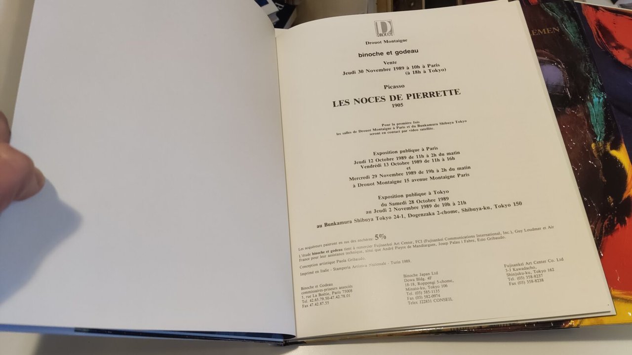 Picasso: Les noces de Pierrette 1905. Andy Warhol: Ladies and gentlemen Binoche et Godeau - 2 volumi in cofanetto 1989 Jeudi 30 Novembre 1989 à 10h Drouot Montaigne Paris Jeudi 30 Novembre 1989 à 18h Bunkamura Tokyo Cataloghi delle mostre allestite tra ottobre e novembre 1989. Les noces de Pierrette presenta diverse illustrazioni. Testo in lingua francese inglese e giapponese. Ladies and gentlemen è quasi completamente illustrato. Libro in ottime condizioni, minimi segni del tempo: sovraccoperte con venature. Non esitate a contattarci per altre foto o richieste. Saremo lieti di soddisfare ogni vostra esigenza.