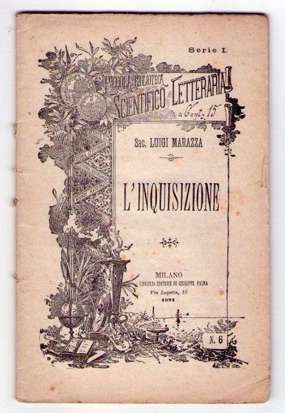 Piccola biblioteca scientifico letteraria. N. 6. LUIGI MARAZZA: L'Inquisizione. Sua origine, storia e difesa con due importanti appendici. 1891