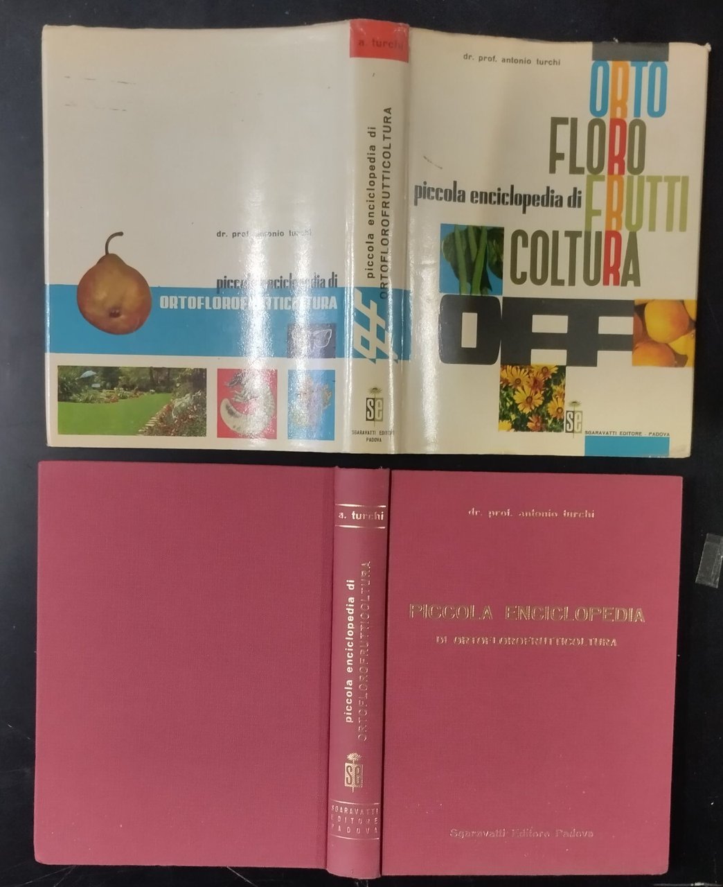 PICCOLA ENCICLOPEDIA DI ORTO FLORO FRUTTICOLTURA di Antonio Turchi. Sgaravatti editore, 1965. 446 pagine numerosissime illustrazioni b/n e colori nel testo. Copertina editoriale in tutta tela con fregi e titoli dorati sul piatto anteriore e sul dorso e sovraccoperta. Dimensioni: 16,5 x 22 cm. Stato di conservazione molto buono (pagine normalmente ingiallite, piccole imperfezioni in copertina)Libro usato saggistica agricoltura