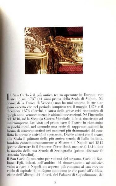 Il volumetto, curato da Sergio Travi, con un'introduzione storica di Francesco Canessa, è ricco di illustrazioni. Racconta le vicende del San Carlo e dei più famosi compositori, cantanti, danzatori, direttori d'orchestra ed impresari che hanno reso grande il San Carlo, il più antico teatro d'opera in Europa fondato per volontà di Carlo di Borbone nel 1737.