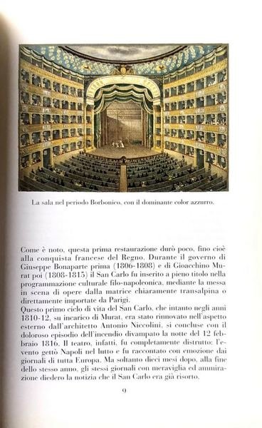 Soggetti: Teatro San Carlo, Storia, Musica, Opera Lirica, Balletto, Arte, Spettacolo, Pubblico, Compositori, Opere liriche, Rappresentazioni teatrali, Cultura classica, Orchestre sinfoniche, Strumenti musicali, Aristocrazia, Palcoscenico, Palchi, Architettura, Teatri lirici napoletani, Palazzo Reale, Reali, History, Opera, Italy, Naples, Geschichte, Musiktheater, Neapel, Conservatorio, San Pietro a Majella, Archivio, Scala, Milano, Fenice, Venezia, Settecento, Sceneggiatura, Antonio Niccolini, Ottocento, Vincenzo Bellini, Pierre Hus, Direttori, Carlo di Borbone, Risanamento urbanistico, Carasale, Grandi Impresari, Domenico Barbaja, Pasquale Di Costanzo, Tenori, Cantanti, Caffarello, Gaetano Majorano, Verdi, Nessun dorma, Va pensiero, Pavarotti, Caterina Gabrielli, Gioacchino Conti, Donizetti, Rossini, Dumas, Stendhal, Viaggio in Italia, Voyage, Stagioni, Programmi, Aida, Traviata, Libri illustrati, Librettisti, Libri fuori catalogo, Storia locale, Music, Ballet, Art, Entertainment, Audience, Composers, Theater plays, Classical culture, Symphony orchestras, Musical instruments, Aristocracy, Stages, Architecture, Neapolitan opera houses, Royal Palace, Conservatory, San Pietro a Majella, Archive, Milan, Venice, Eighteenth century, Screenplay, Nineteenth century, Directors, Urban renewal, Carasale, Great Impresarios, Tenors, Singers, Travel in Italy, Seasons, Programs, Illustrated books, Librettists, Out of print books, Local history, Puccini