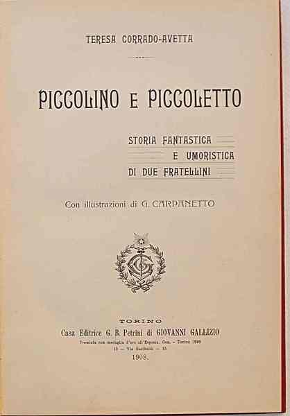 Piccolino e Piccoletto. Storia fantastica e umoristica di due gratellini.