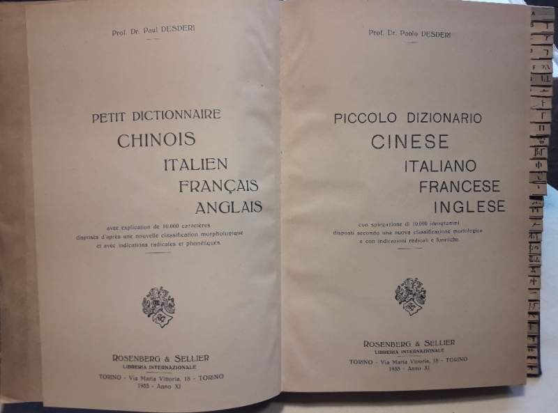 PICCOLO DIZIONARIO CINESE ITALIANO FRANCESE INGLESE(1933)