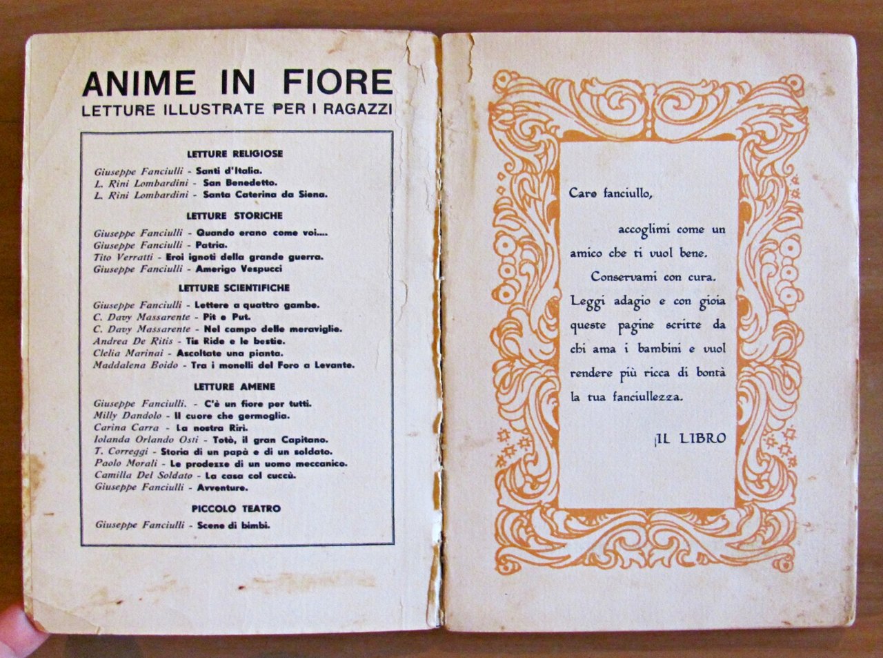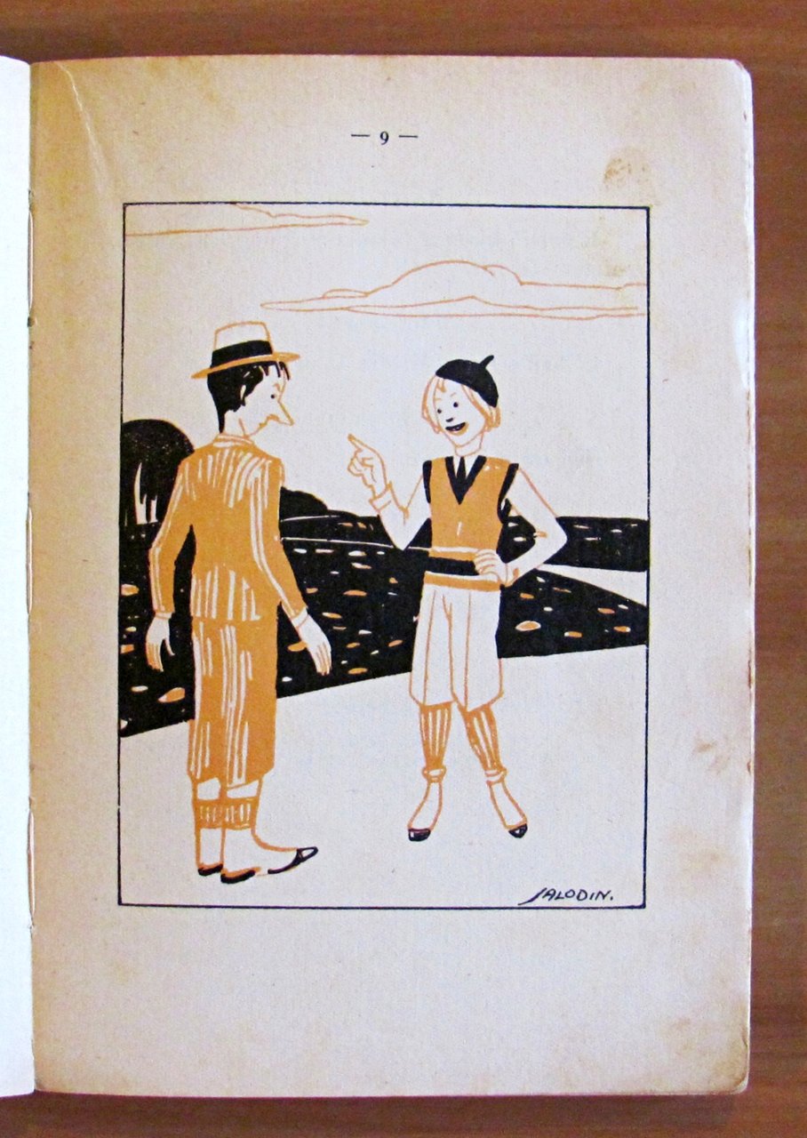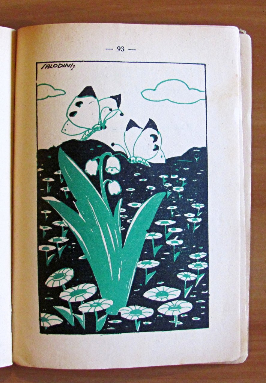 Letture Illustrate per i ragazzi. 8 illustrazioni in tricromia a piena pagina di Carlo Salodini Società Editrice La Scuola - Brescia, 1935. Cartonato editoriale con dorso in tela originale. Tracce d'uso alle copertine e antiporta e sommario incollate ai risguardi, spellatura della carta alle cerniere e lievi fioriture del tempo in qualche pagina. 13,5x19; pp.110. RARO e in BUONO STATO , Buono (Good)