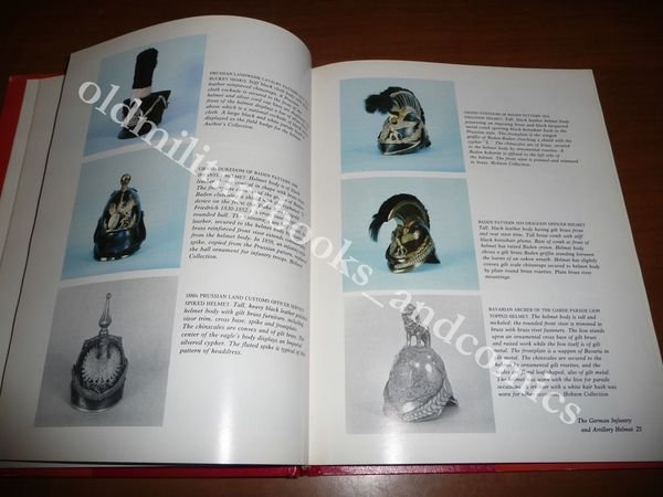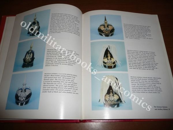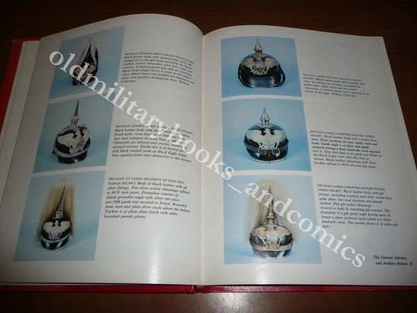 DESCRIZIONE: HSM Publications, Indipendence, 1982. In 4°, leg. s.pelle rossa con tit. oro al dorso e sovracc. ill. a col., pp. 180 con centinaia di ill. b/n e col. n.t., 1^ ediz. Volume monografico in lingua inglese sugli elmi chiodati a punta prussiani (Pickelhauben, anche conosciuti come Helm mit Spitze). Opera rarissima in tiratura limitata, numerata a mano e autografata dall'autore. Indice completo in foto. CONDIZIONI: Ottime. Piccole abrasioni, pieghe e strappetti alla sovraccoperta. Quasi perfetto all'interno. Introvabile in queste condizioni! PESO / WEIGHT: 1020 gr. without package
