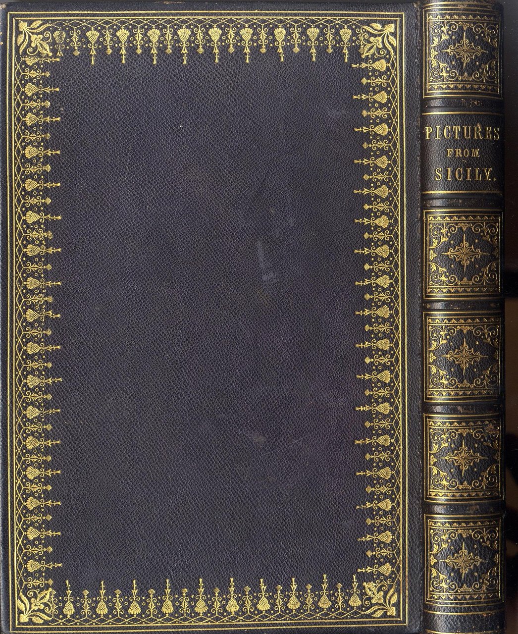 >in-8, pp. (10 compresa incisione in antiporta e titolo) , 200, (16) di catalogo editoriale. Legatura romantica in marocchino violetto, elegantemente ornata in oro ai piatti e al dorso, dentelles interne, tagli dorati. Bellissima opera riccamente illustrata da 33 incisioni fuori testo su acciaio (compresi antiporta, frontespizio e carta geografica della Sicilia) eseguite da Cousen, Willmore, Hughes, Brandard, Challis; e 16 xilografie nel testo. Elegantemente legato all'epoca in piena pelle, i piatti ornati da ricca bordura floreale, titolo e filetti oro al dorso a nervi, dentelles e tagli dorati. Buon esemplare con le tavole protette dalle veline originale, leggero spotting.
