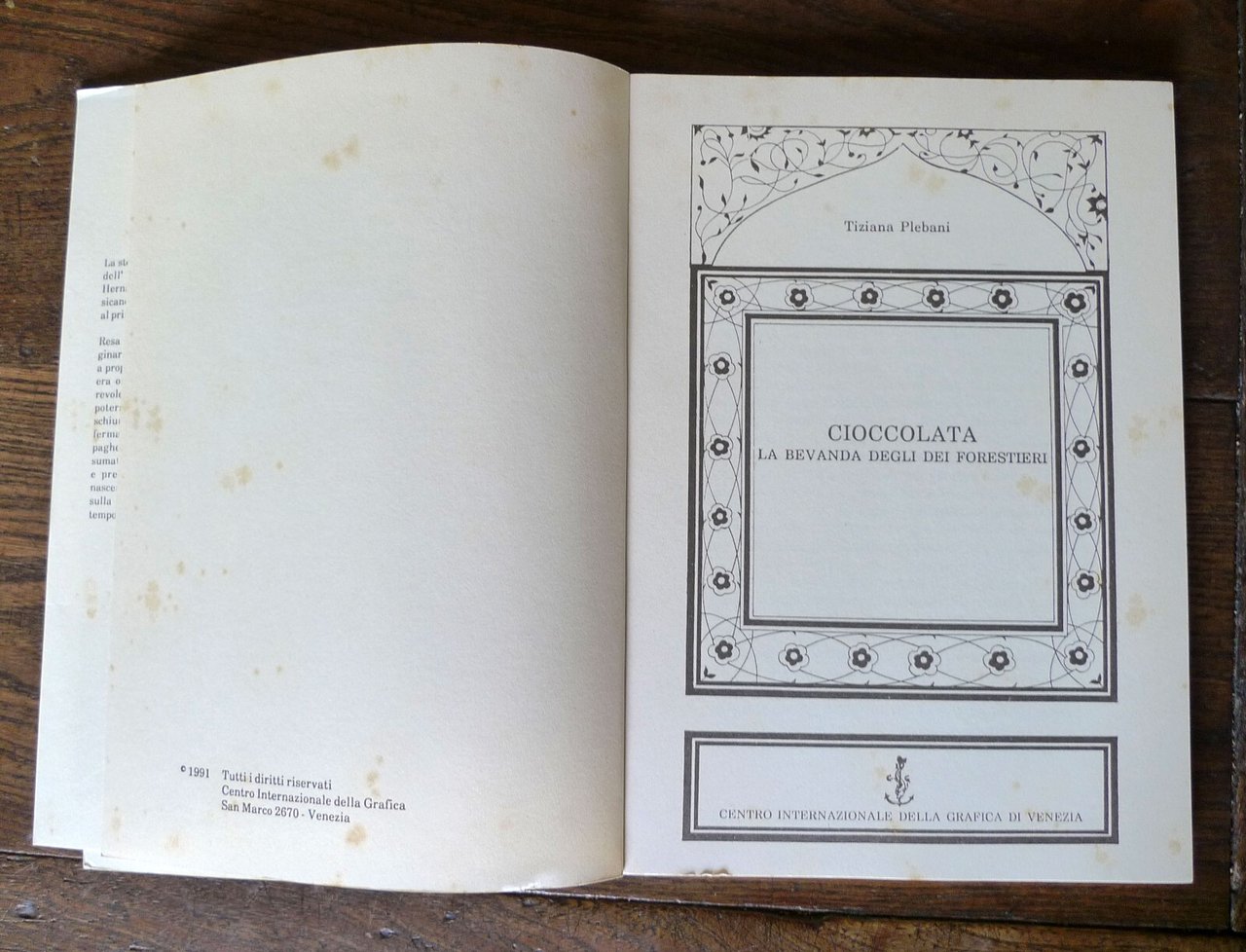 Piebani,CIOCCOLATA.LA BEVANDA DEGLI DEI FORESTIERI,1991 Venezia,Centro Grafica