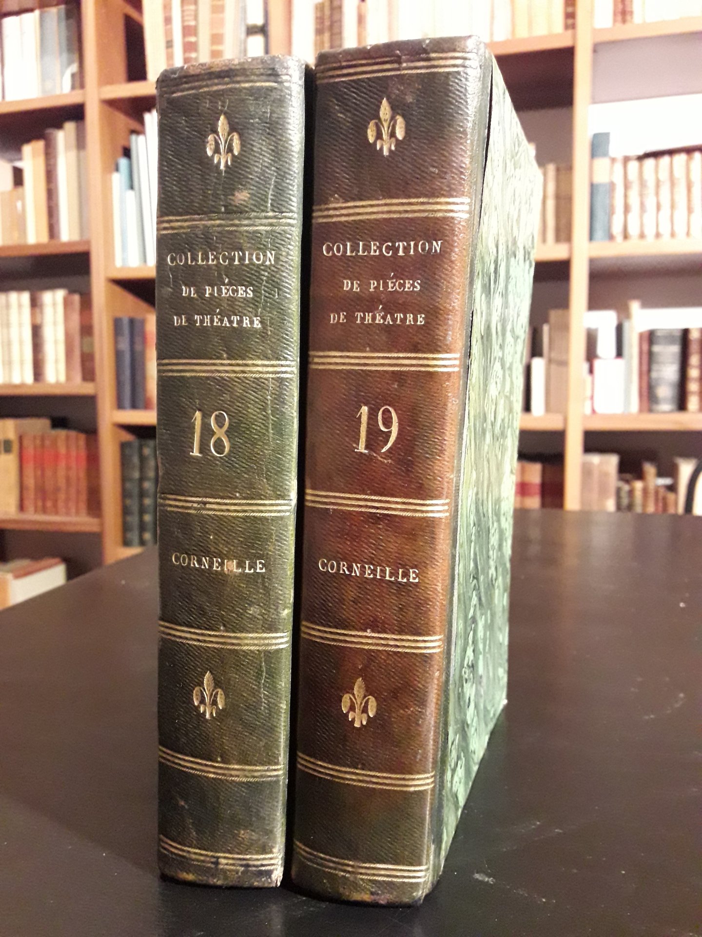 2 voll. in 8°, p. XVI, 456; 526. Contiene: Vie de P. Corneille par Fontenelle, Cid, Les Horaces, Cimma, Polyeucte (tutte e quattro con la prefazione di Voltaire) e La mort de Pompée. Qualche leggera fioritura. Legatura coeva in mezza pelle.