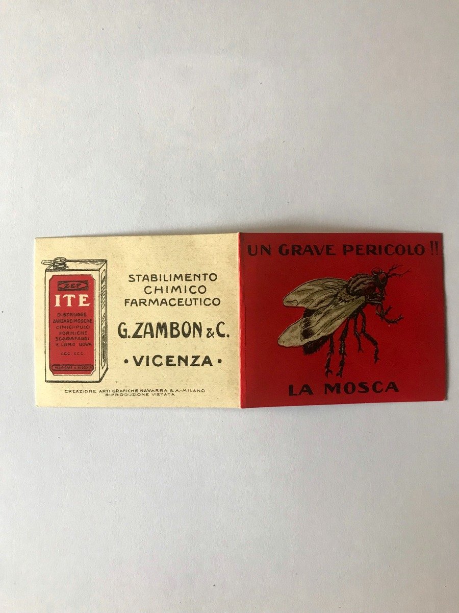 Pieghevole Pubblicitario A Fisarmonica Un Grave Pericolo La Mosca '30