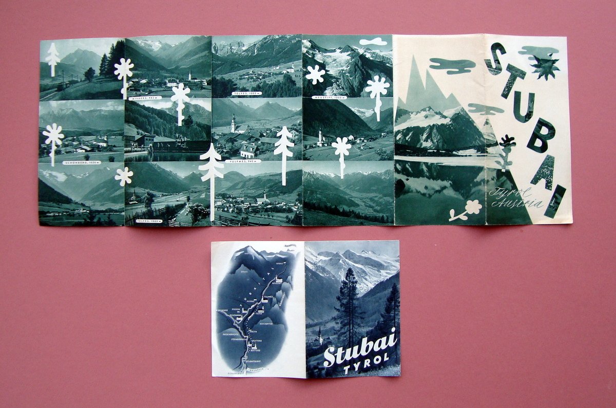 Pieghevole Turistico Stubai Tyrol Austria anni '40 Telfes Mieders Schonberg