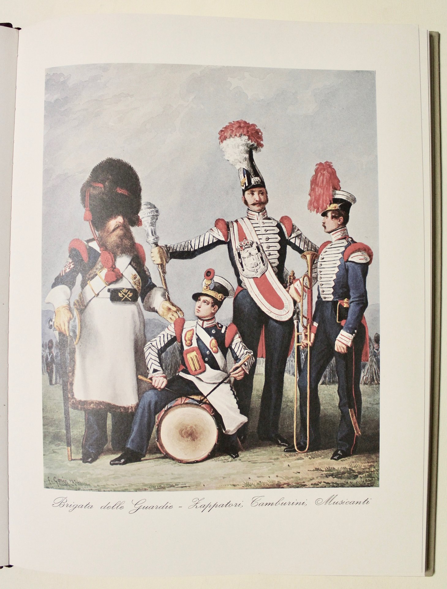 In folio (mm 400x300); pagg. 143 con 21 tavv. a colori con riproduzione di altrettanti acquerelli uniforni militari dello Stato Sardo nel 1838 inediti da Gonin. Inoltre 23 illustraz. n.t. di cui 14 a colori con vedute e battaglie. Ediz. di 1000 esempl. numerati (n 259). Elegante leg. edit. m. pelle con titolo a stampa al piatto. Completo di custodia edit. Ottimo esemplare.<BR>