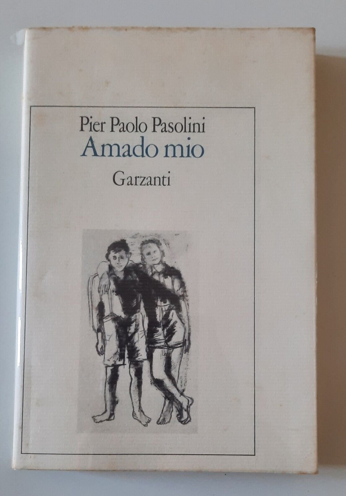 PIER PAOLO PASOLINI AMADO MIO GARZANTI 1982 In 8°, legature editoriale, sovracopertina in acetato trasparente, copertina illustrata.Lievissimi segni alla copertina, piccolo strappo alla sovracopertina