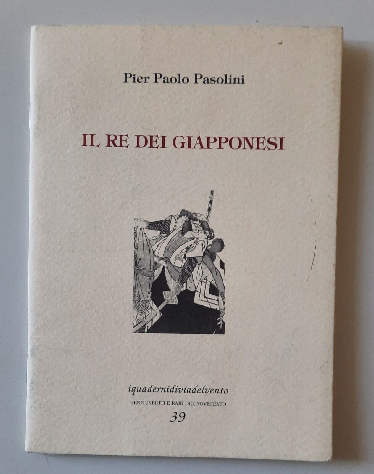 PIER PAOLO PASOLINI IL RE DEI GIAPPONESI VIA DEL VENTO 2003In 12°, pag. 31, legatura editoriale, copertina illustrata.In ottime condizioni, lievissimi segni alla copertina.
