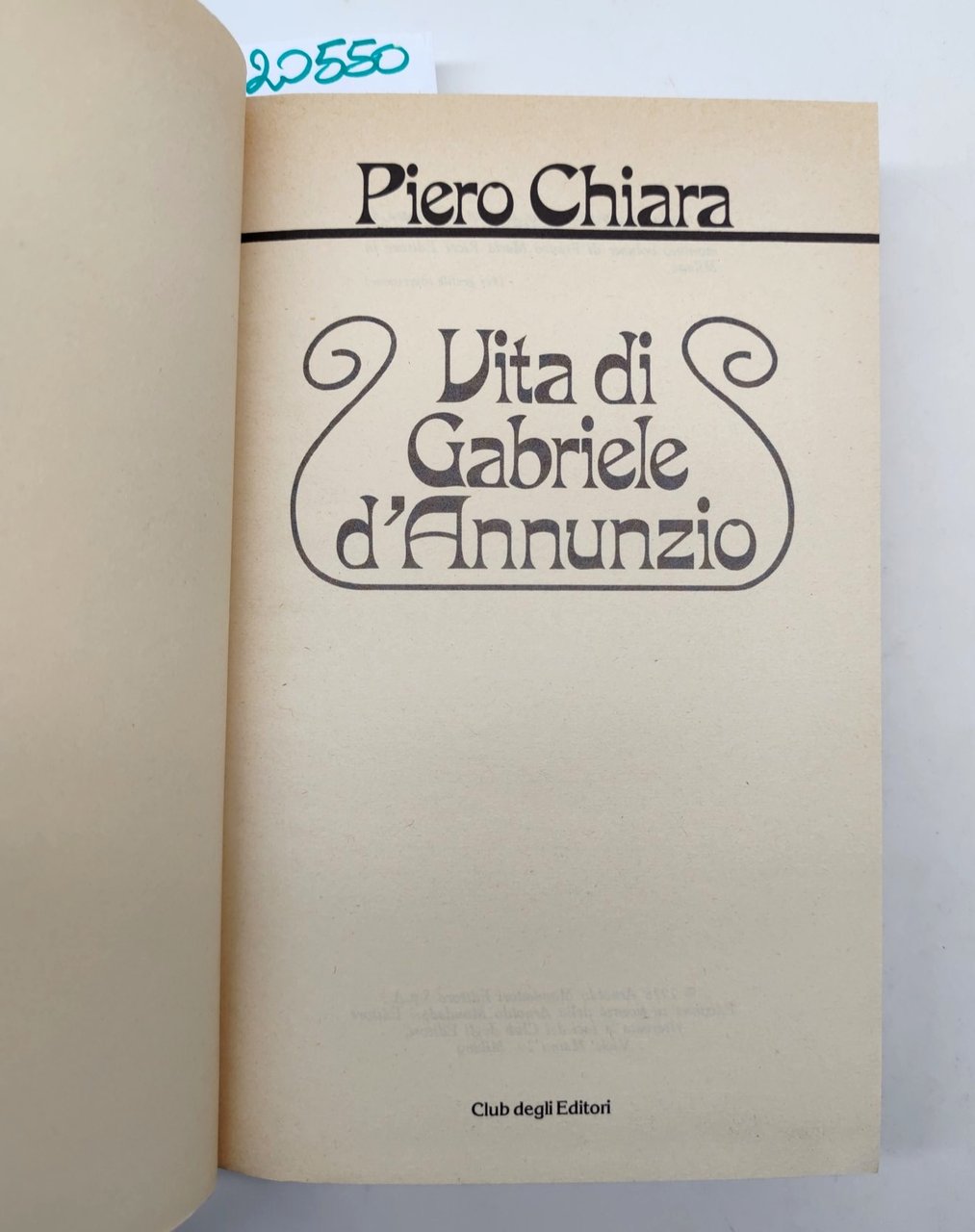 Piero Chiara Vita di Gabriele D'Annunzio Club degli Editori 1978