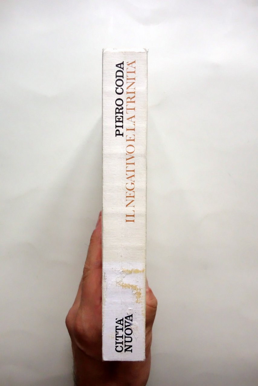 Piero Coda, Il Negativo e la Trinità ipotesi su Hegel indagine storico-sistematica sulla denkform" hegeliana alla luce dell'ermeneutica del cristianesimo. Un contributo al dibattito contemporaneo sul Cristo crocifisso come rivelazione del Dio trinitario nella storia Città Nuova, Brescia 1987; cm 21,5x14,5; pp. 456; brossura ed. con bandelle. Frontespizio con timbro di biblioteca, esemplare regolarmente annullato. Condizioni di conservazione Ben conservato con leggere tracce d'uso, alla parte inferiore del dorso qualche minima abrasione. Interni molto ben conservati; solamente alla seconda di copertina traccia di vecchia etichetta applicata. SETT194.L24391 N "