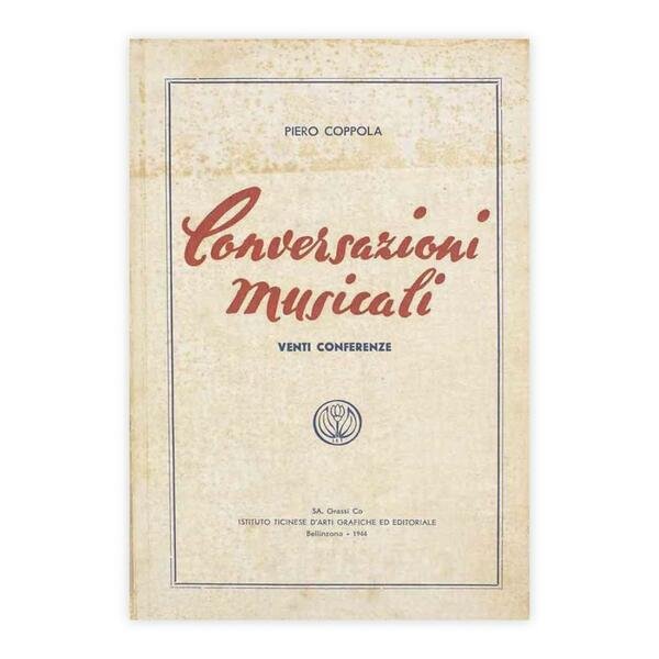 Autore: Piero Coppola Titolo: Conversazioni Musicali Edizione: Istituto Ticinese d'Arti grafiche ed editoriale - 1944 Dimensioni: 20x13 cm Pagine: 229 Copertina: Brossura Condizioni: Buone