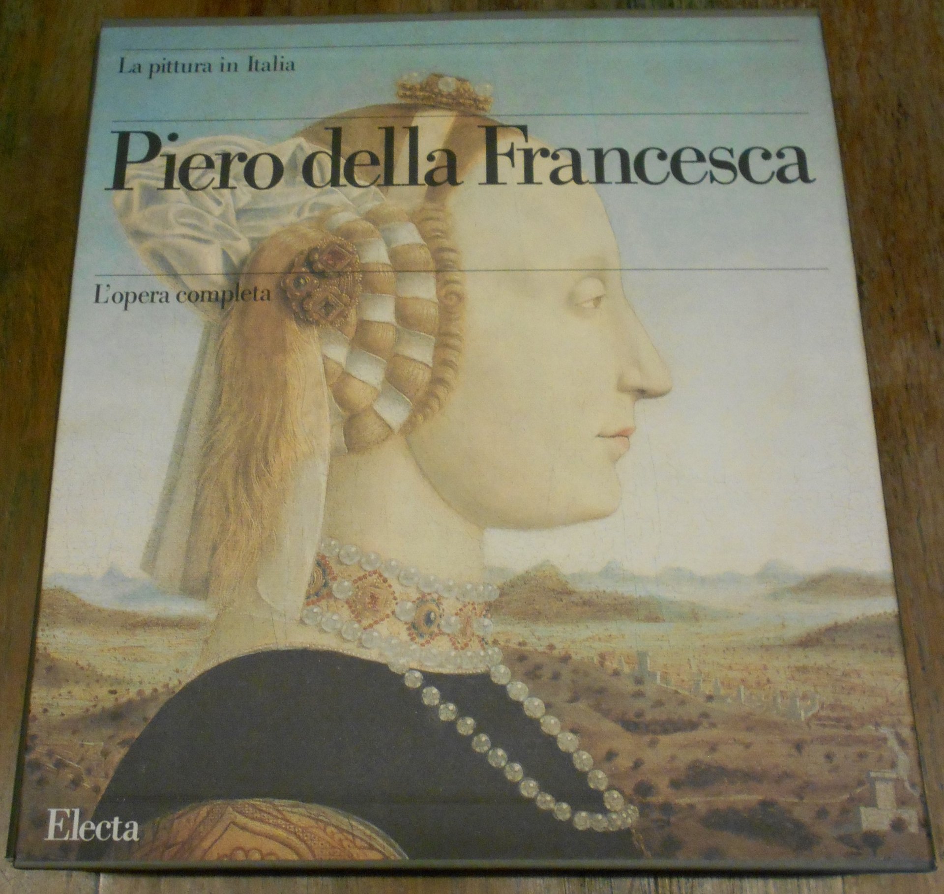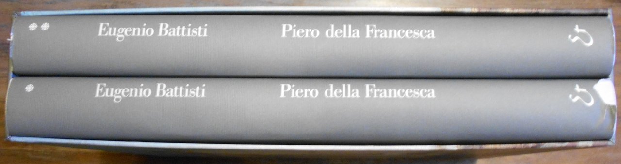 Due tomi in 4° (cm 28,5 x 25,5), legatura editoriale in piena tela bianca con titoli in nero al dorso, sovraccoperte e custodia rigida illustrate a colori, pp. complessive 687,(1), con centinaia di illustrazioni in bianco e nero ed a colori, molte a piena pagina, nel testo. Un capitolo con osservazioni a cura di Carla Corsi Miraglia : "La casa di Piero a Sansepolcro". Ottimo stato di conservazione, solo una piccola menda al dorso della sovraccoperta nel primo tomo.