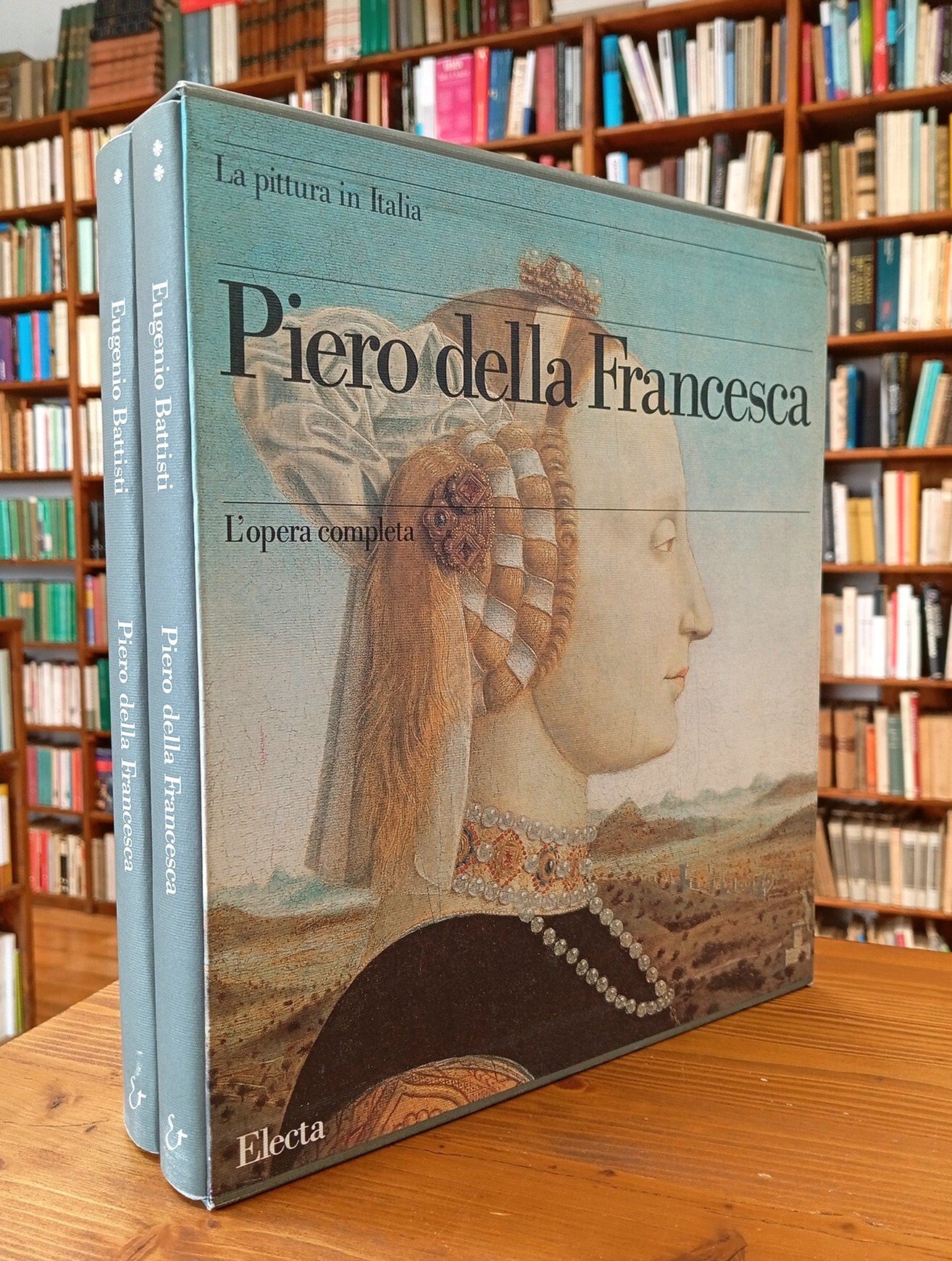 Collana "La pittura in Italia". Nuova edizione riveduta e aggiornata con il coordinamento scientifico di Marisa Dalai Emiliani - Opera completa di due volumi in copertina rigida con sovraccoperta, custodia editoriale figurata, 687 pagine a numerazione continua con ricco apparato iconografico a colori e in bianco e nero lungo l'intero testo. Copia eccellente, poco o nulla frequentata, di un catalogo raro e ricercato, oltreché fondamentale per lo studio di Piero della Francesca.