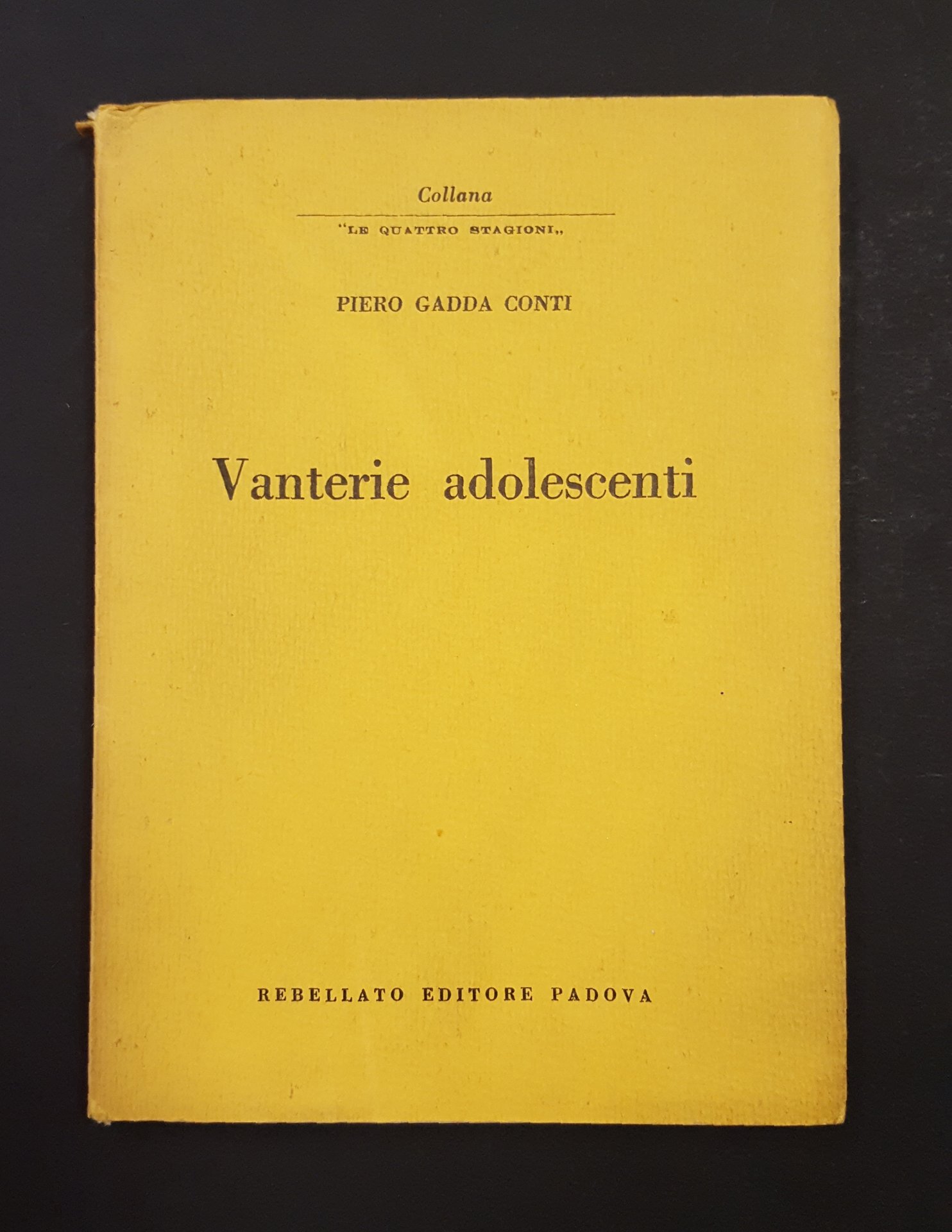 Piero Gadda Conti. Vanterie adolescenti. Rebellato Editore. 1960 - I. In-16. Brossura con sovracoperta. pp. 87