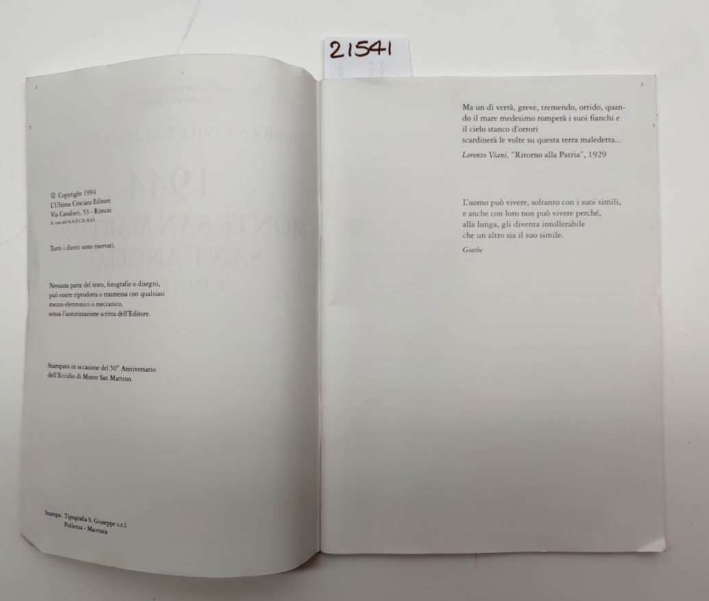 Piervenanzi Scocco 1944 Monte San Martino Sant'Angelo e dintorni guerra civile nel maceratese Ultima Crociata 1994