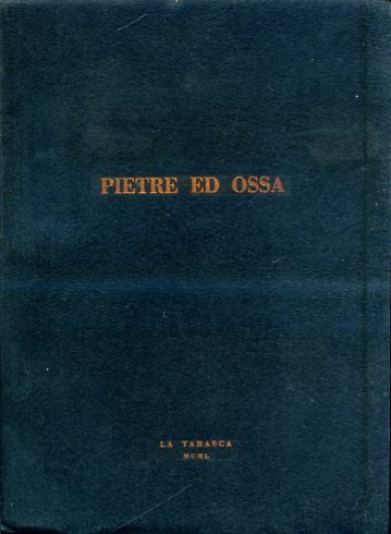 In-8°, pp. 20, (4), brossura editoriale nera a risvolti con titolo in oro. Allegato biglietto da visita dell'autore con suo invio autografo. Perfetta copia intonsa. La prima edizione della raccolta fu pubblicata All' Insegna Della Tarasca nel 1933.
