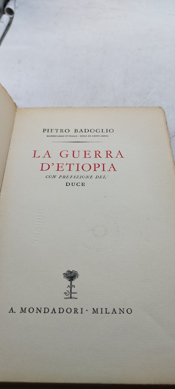 pietro badoglio la guerra d'etiopia mondadori. , Mondadori 1937 italiano, pp.288 ^^^
