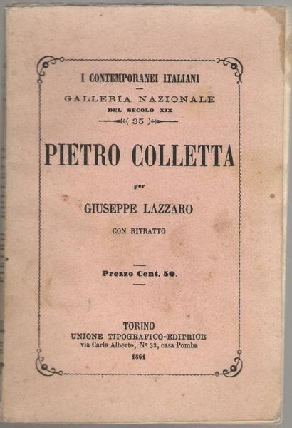 Br., cm9x13.5, pp 71 (1); ritratto inciso all'antiporta. Biografia, numero 35 della serie I Contemporanei Italiani – Galleria Nazionale del Secolo XIX.