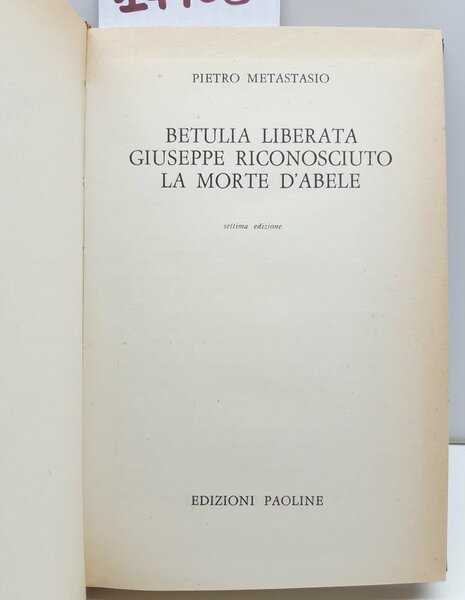 Pietro Metastasio Betulia liberata Giuseppe riconosciuto La morte di Abele 7° ed. Paoline 1963