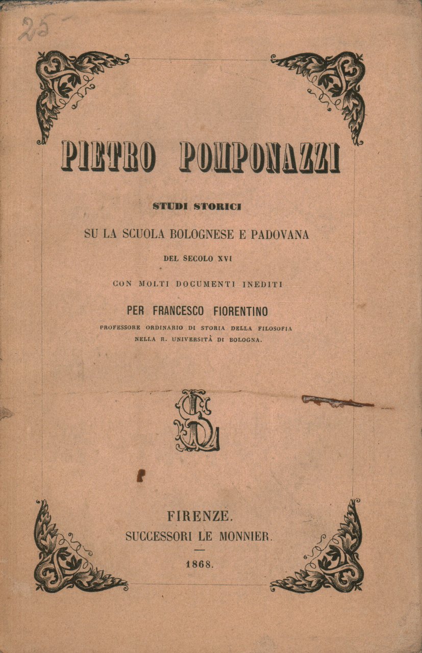 Pietro Pomponazzi. Studi storici su la scuola bolognese e padovana del secolo XVI con molti documenti inediti