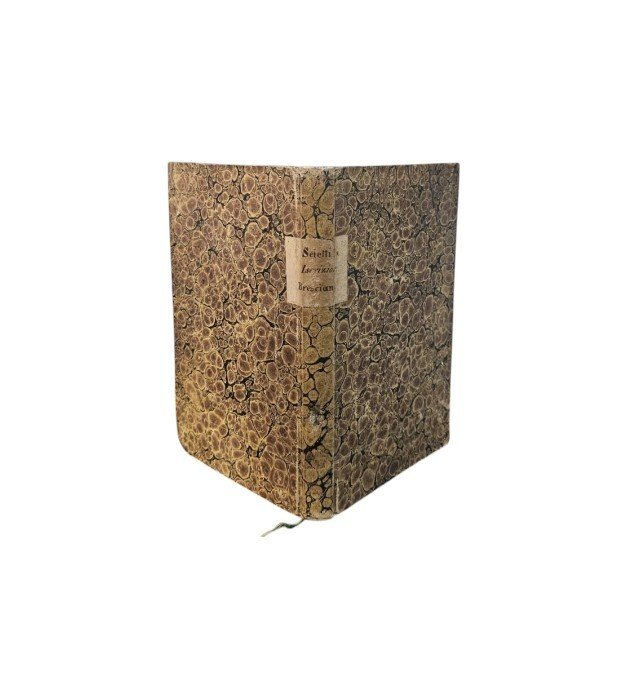 Legatura coeva in carta marmorizzata con titolo in tassello manoscritto al dorso