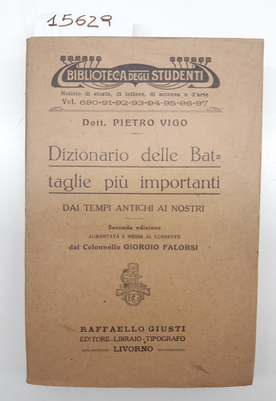 Pietro Vigo Dizionario delle battaglie pi˘ importanti dai tempi antichi ai nostri Raffaello Giusti Livorno 1927