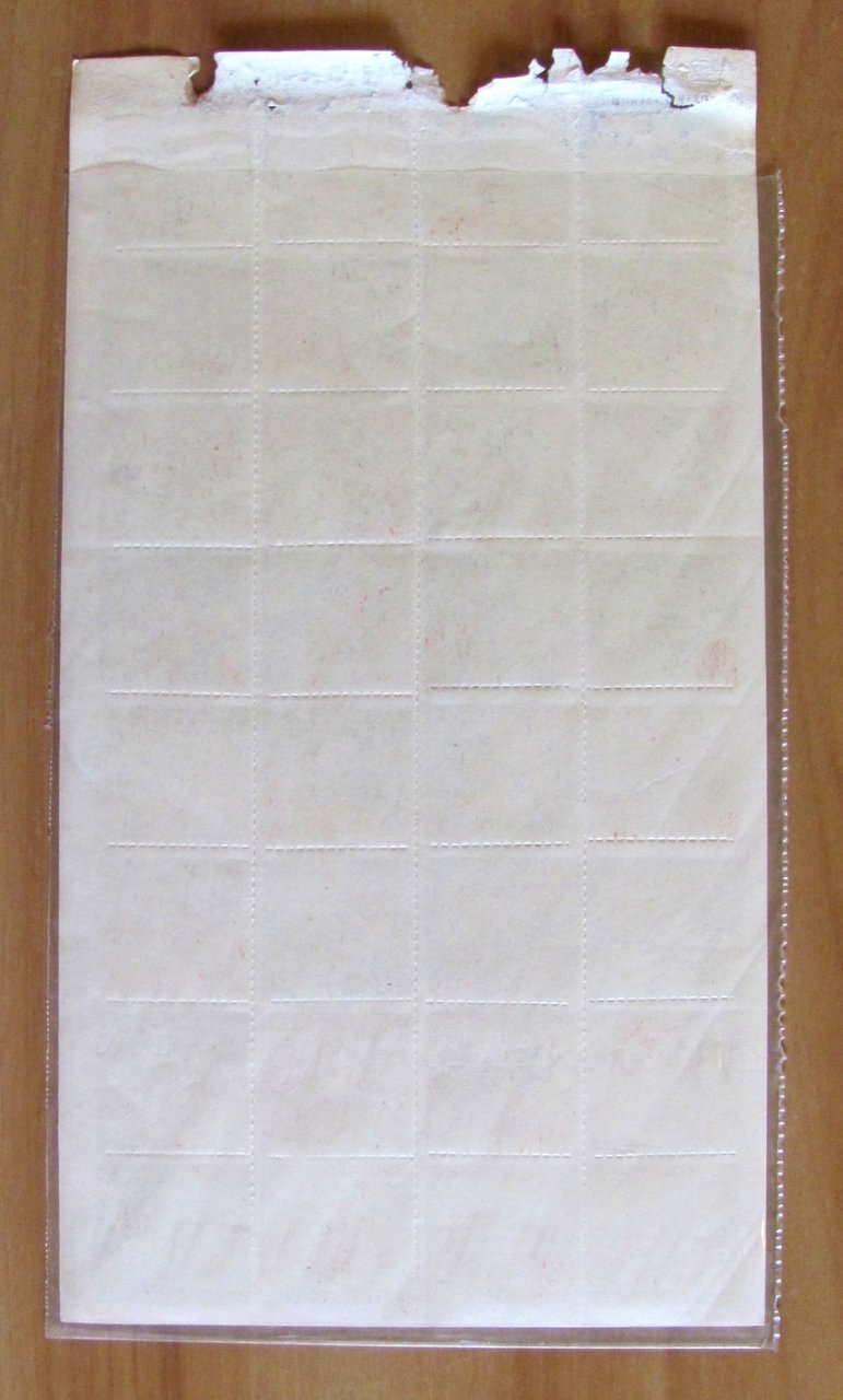Foglio di 32 Decalcomanie Made in England, s.d. anni '40. Foglio 14,5x26,5 con 32 decalcomanie preintagliate 3,4x3,2 ciascuna. Imperfezioni ininfluenti al margine alto del foglio. Rare e in Ottimo stato. , Ottimo (Fine)