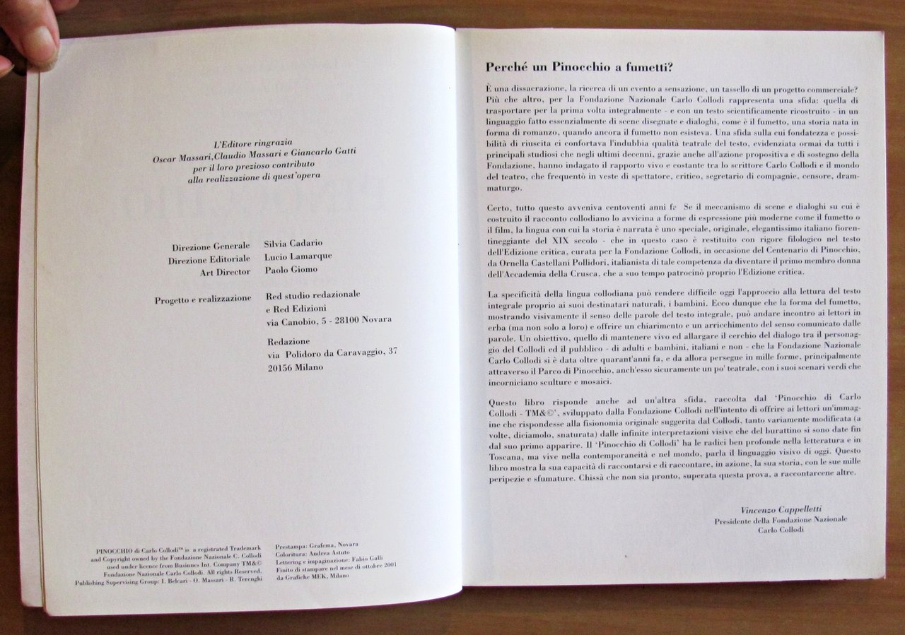 Con il testo integrale di Carlo Collodi. Pinocchio a fumetti. Presentato da La Fondazione Nazionale Carlo Collodi. Fumetti a colori in tutte le pagine. Ed. Red - Novara, 2001. Brossura editoriale. 18,5x24; pp.202. Stato di Nuovo. , Perfetto (Mint)