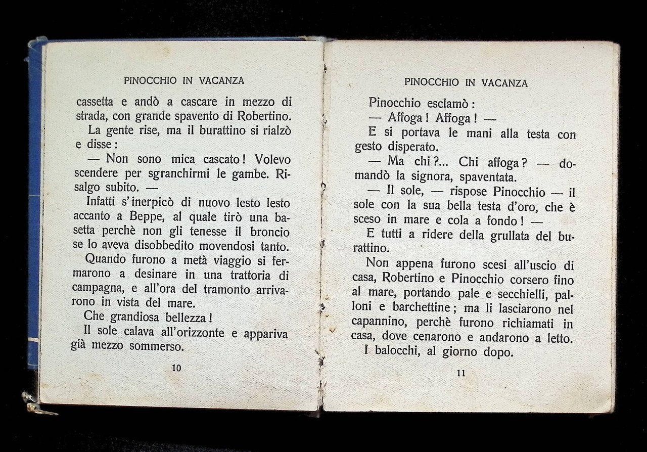Pinocchio in Vacanza Libro Illustrato Faorzi Salani 1936 Raro