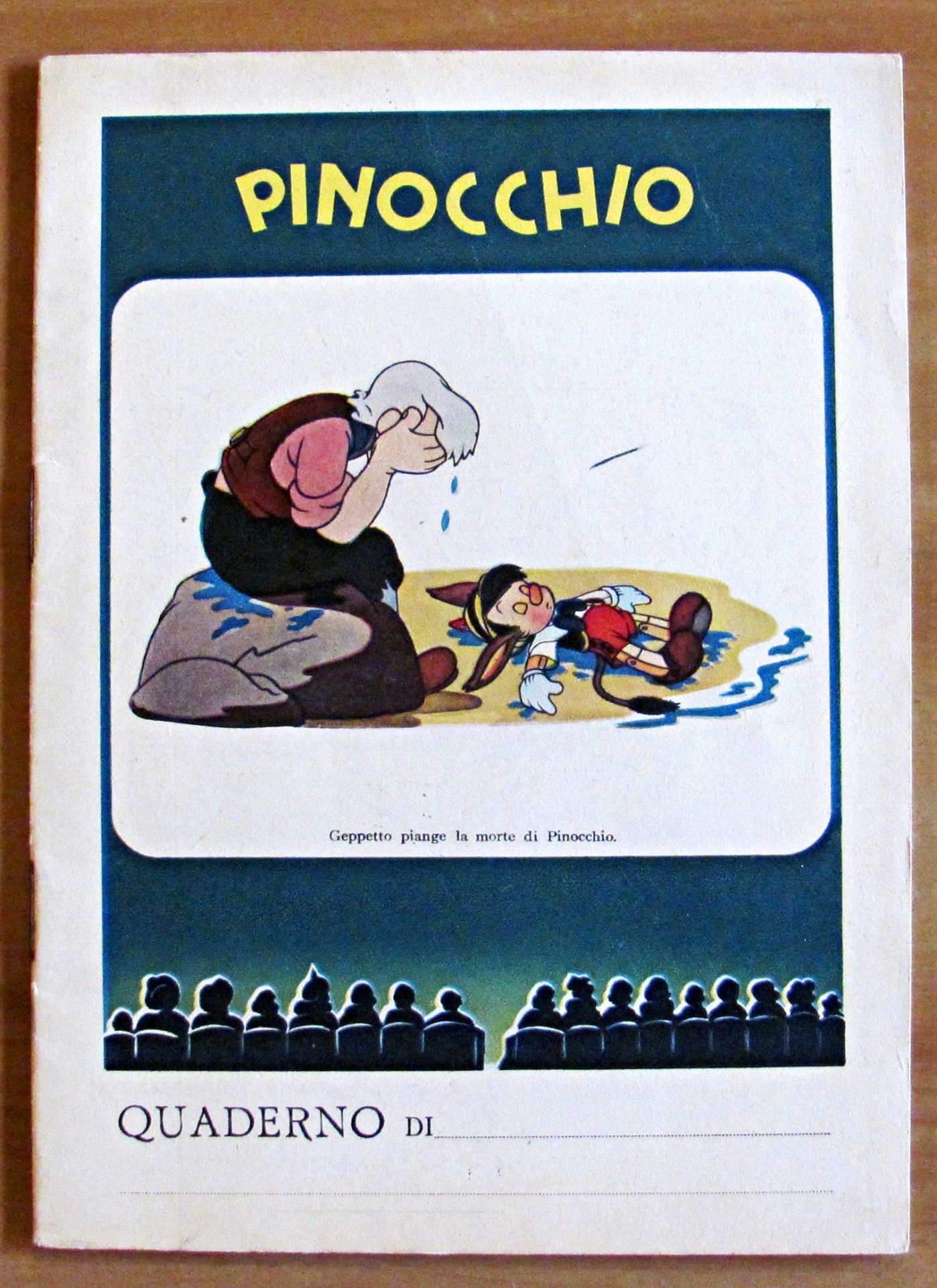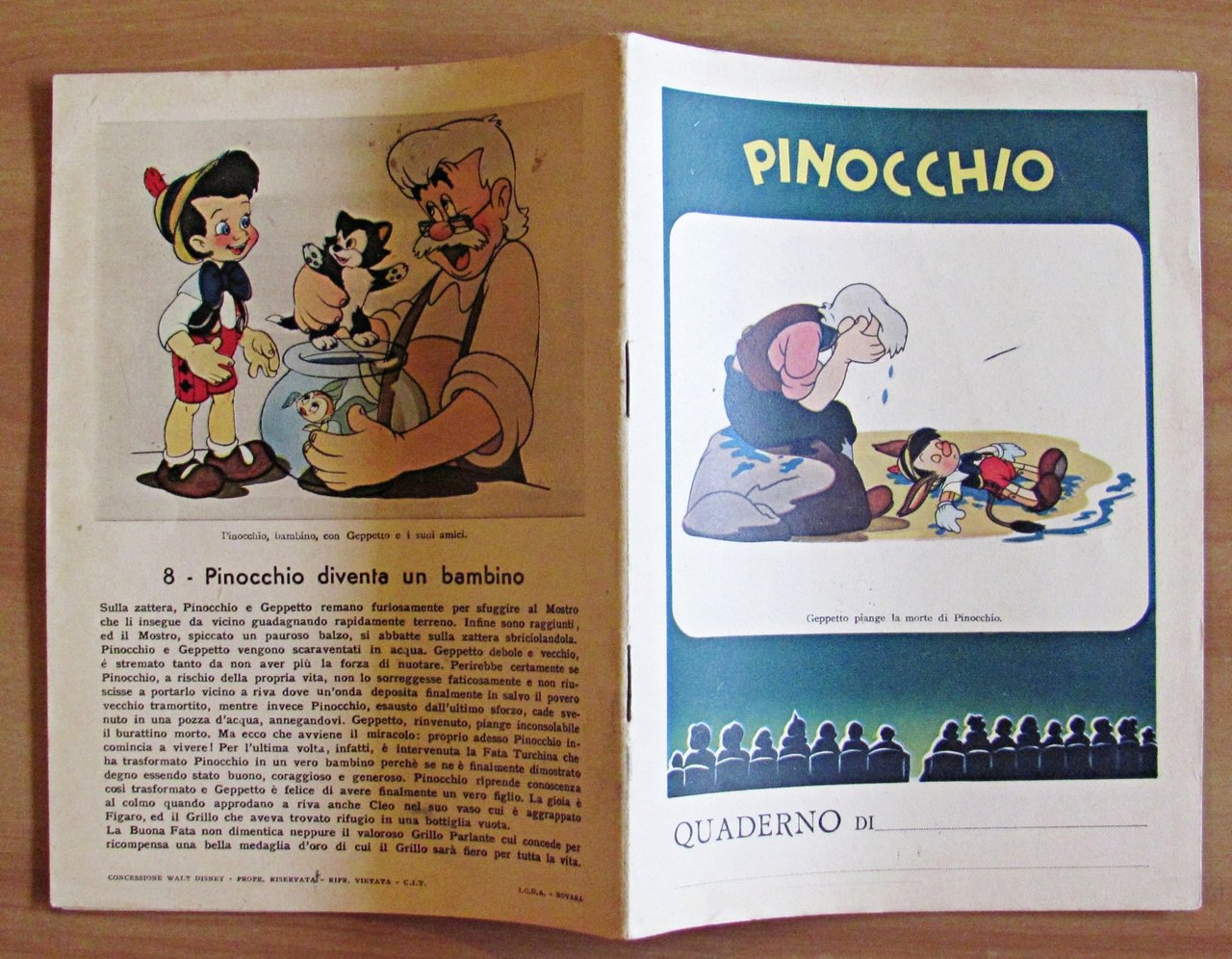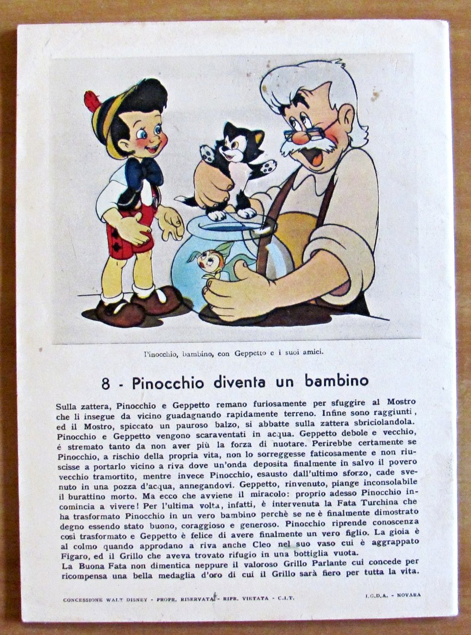 Quaderno per la quinta elementare. Pinocchio N.8 Pinocchio diventa un bambino. Ed. I.G.D.A. - Novara, s.d. anni '40/50. Quaderno per la quinta elementare, con copertine a colori. 15x20. Stato di Nuovo. , Perfetto (Mint)