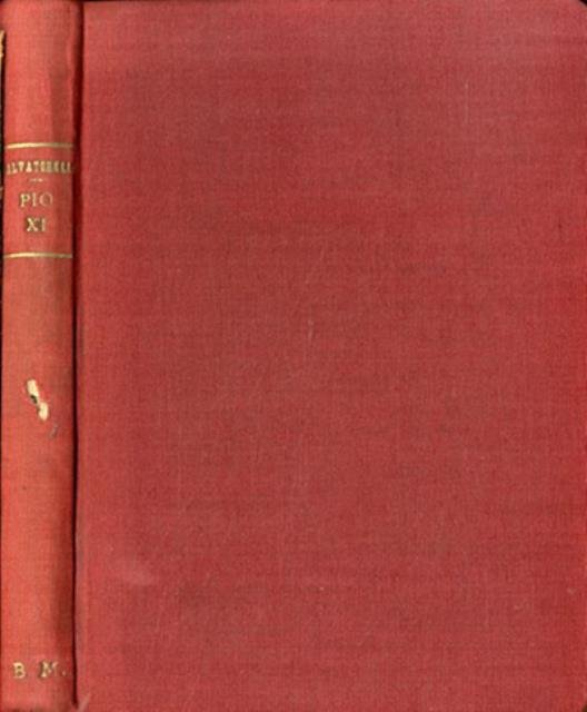 259 p. ; 22 x 15 cm. Saggi, 15. In questo saggio l'autore, uno dei massimi storici italiani del Novecento, offre un'esposizione lineare, ben documentata, dell'attività multiforme svolta da Pio XI (1857-1939) nel suo pontificato durato oltre diciassette anni . Nei sette capitoli in cui è suddiviso il libro, ai quali si aggiungono due indici, il primo degli atti pontificali per ordine cronologico, il secondo dei nomi citati nel testo, l'autore ha esposto per argomenti, l'opera di Pio XI aprendo lo studio con una premessa dedicata a Benedetto XV (1854-1922), predecessore di Pio XI nella cattedra di S. Pietro. Legatura non editoriale, coperta in cartone rigido telato di colore rosso scuro, titolo impresso in oro al dorso, muto il piatto. Qualche segno del tempo al dorso, alcune sottolineature a matita, per il resto libro integro. Codice libreria 8423.